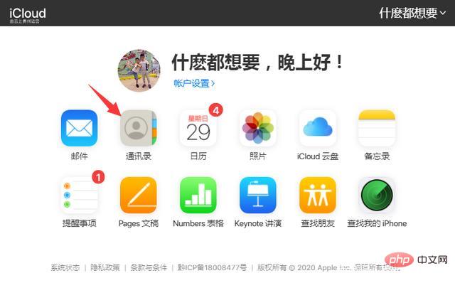 2、然后打开苹果iCloud里面的通讯录进入到里面。