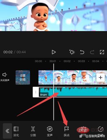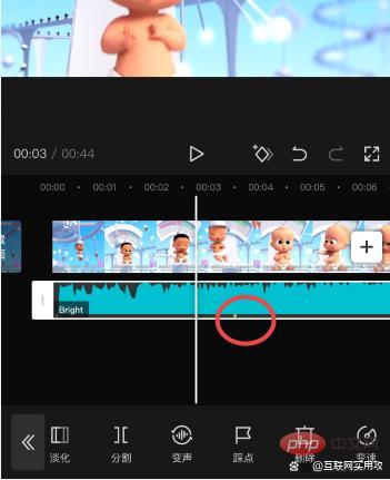 7、根据需要剪辑视频素材,使得视频画面的节奏和音频素材下方的小黄点(卡点)位置相匹配即可。